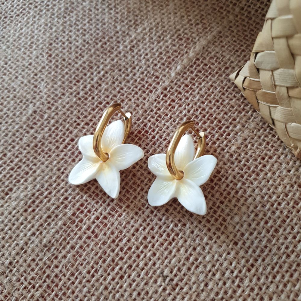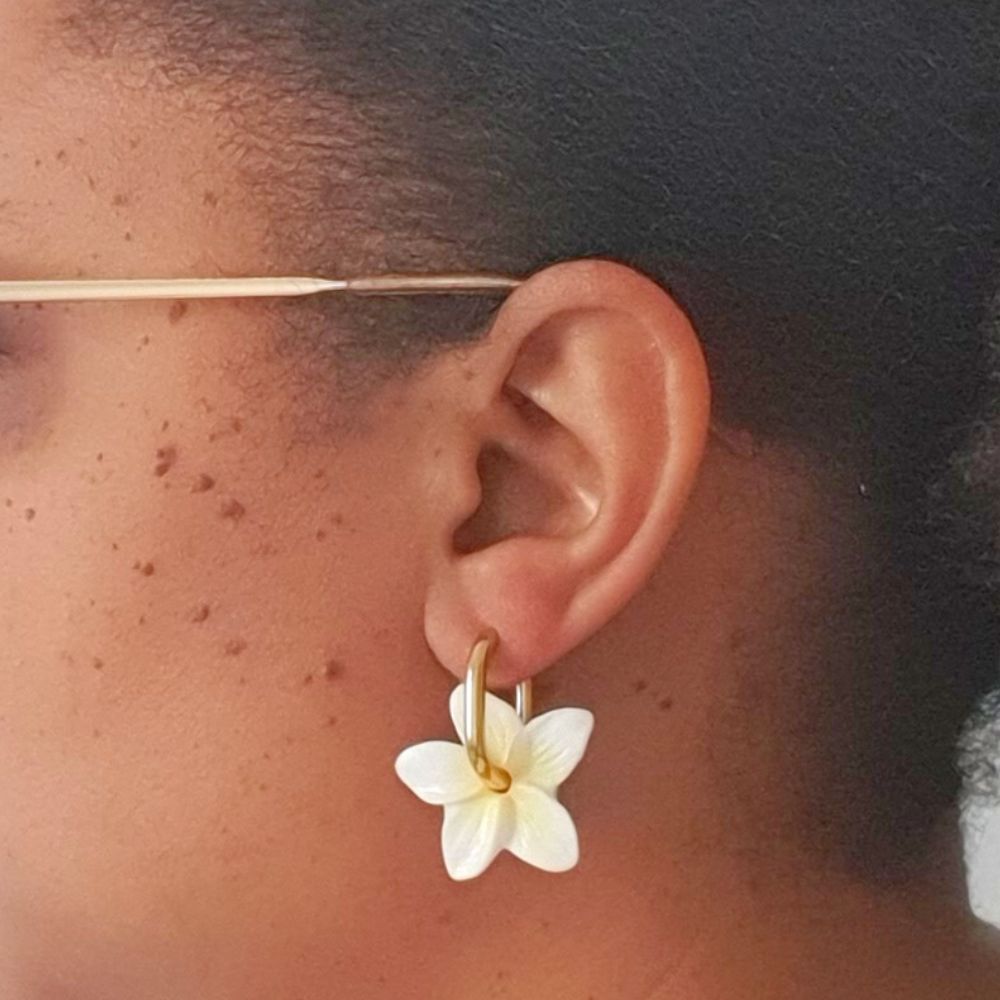Avec Zano Fleurie, tu changes de fleur comme tu changes de jour. Des frangipaniers faits main, légers et colorés, à enfiler sur tes créoles en un geste.